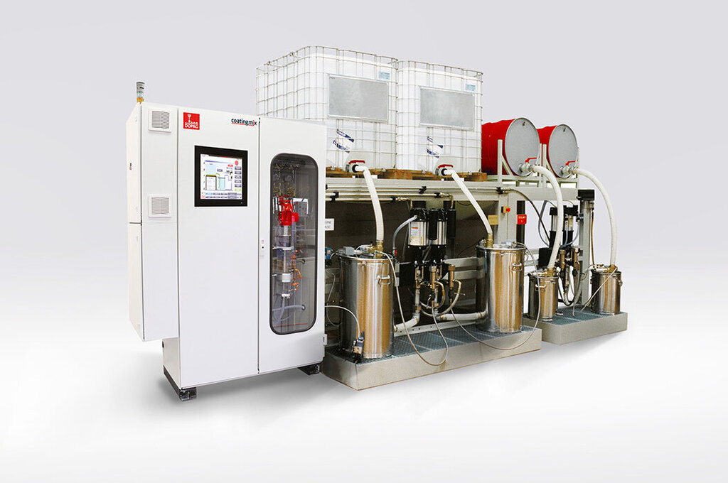 Coatingmix始终提供优质材料并达到更高定量精度(最高偏差 < 0.5 %)。由IBC容器或200 L桶等原装容器直接供料。这将加快续料过程,节省材料并确保工作区整洁。独立处理各组分将确保在生产过程中连续供料。彩色触摸显示屏也确保轻松使用和管理所存储的各种配方。